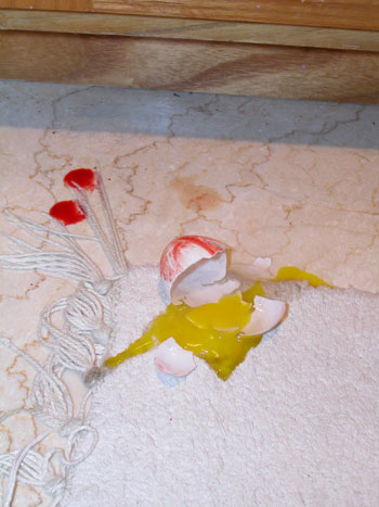 that look that says, "I'm gonna lay an egg any minute and I have no sense of humor whatsoever so keep your distance!" Below, on 4/4/05, Poopy is sitting on her second egg of the year in a new soda box! ![]() |