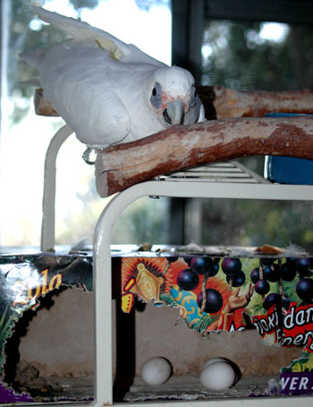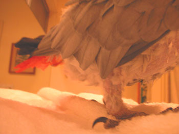 ![]() A couple of hours after laying the egg, Togo is back to her old self. With this attitude, I wouldn't have a CHANCE at scratching her on the head now! She ate quite well right after this image was taken and then spent a quiet night in the warm hospital cage. |